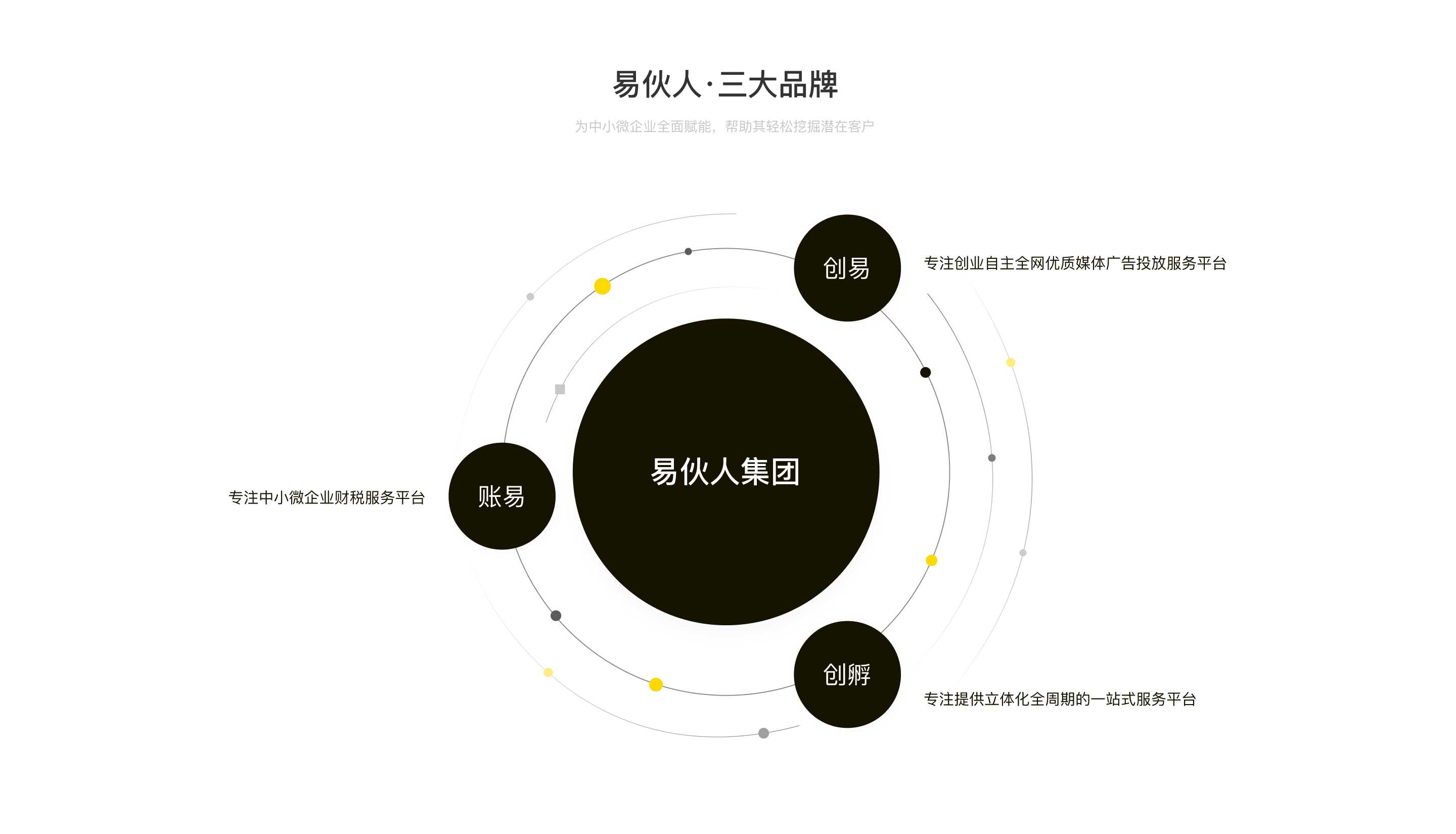 集團(tuán)旗下三?業(yè)務(wù)品牌:創(chuàng)易、賬易、創(chuàng)孵,整體業(yè)務(wù)涵蓋互聯(lián)??告、?商財稅、企業(yè)云服務(wù)、IT研發(fā)、創(chuàng)業(yè)企服、項目投資等主流板塊,集團(tuán)總部位于廣西南寧市,業(yè)務(wù)覆蓋地域桂、瓊、黔、陜、青、遼等地